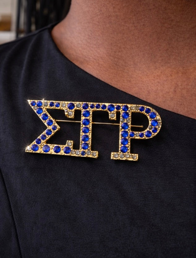 Stainless steel Blue and Gold Rhinestone clothing pin sorority design